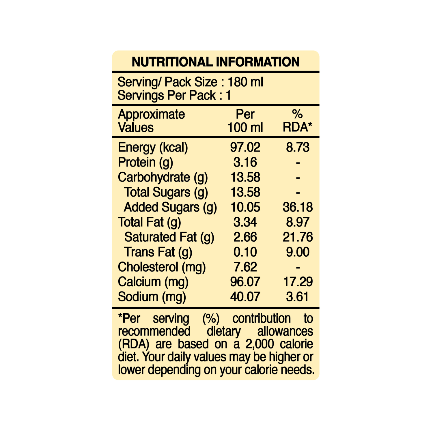 | Approximate Values | PER 100 ml | % RDA* |