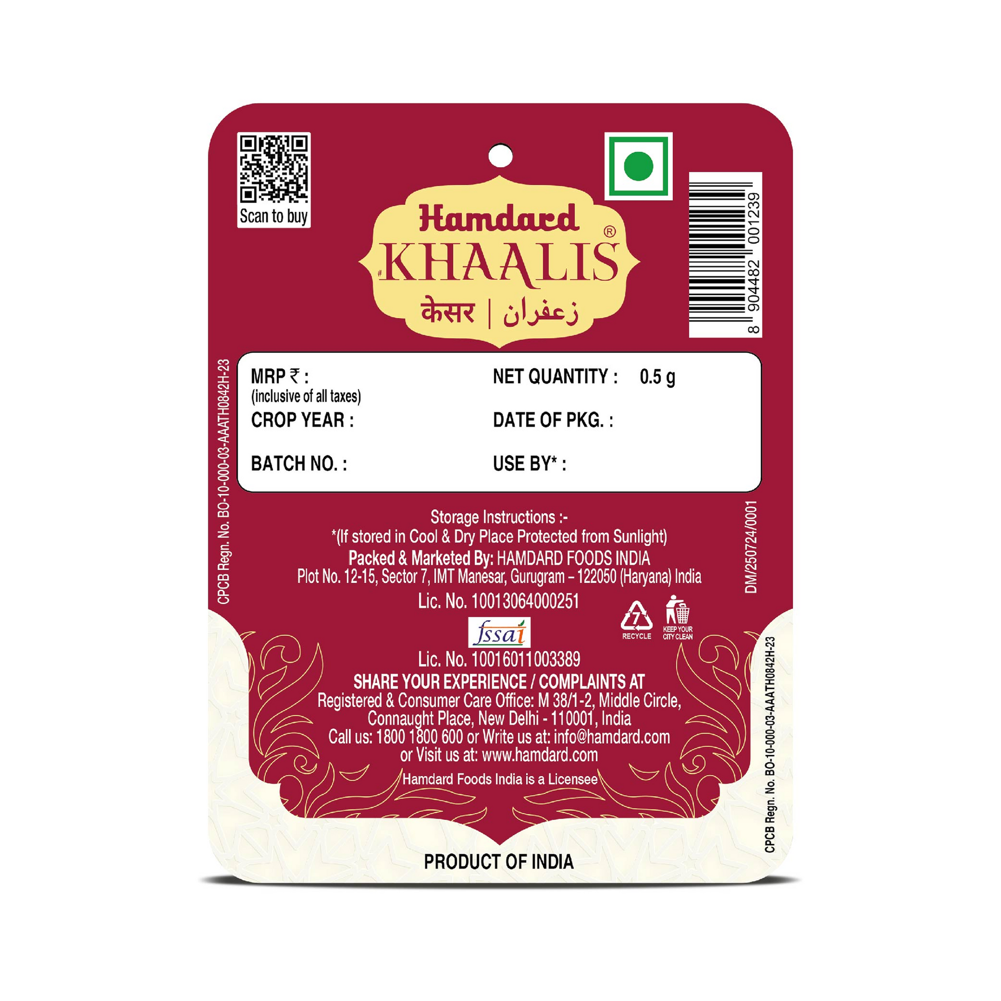 Hamdard Finest & Purest Saffron | 0.5g