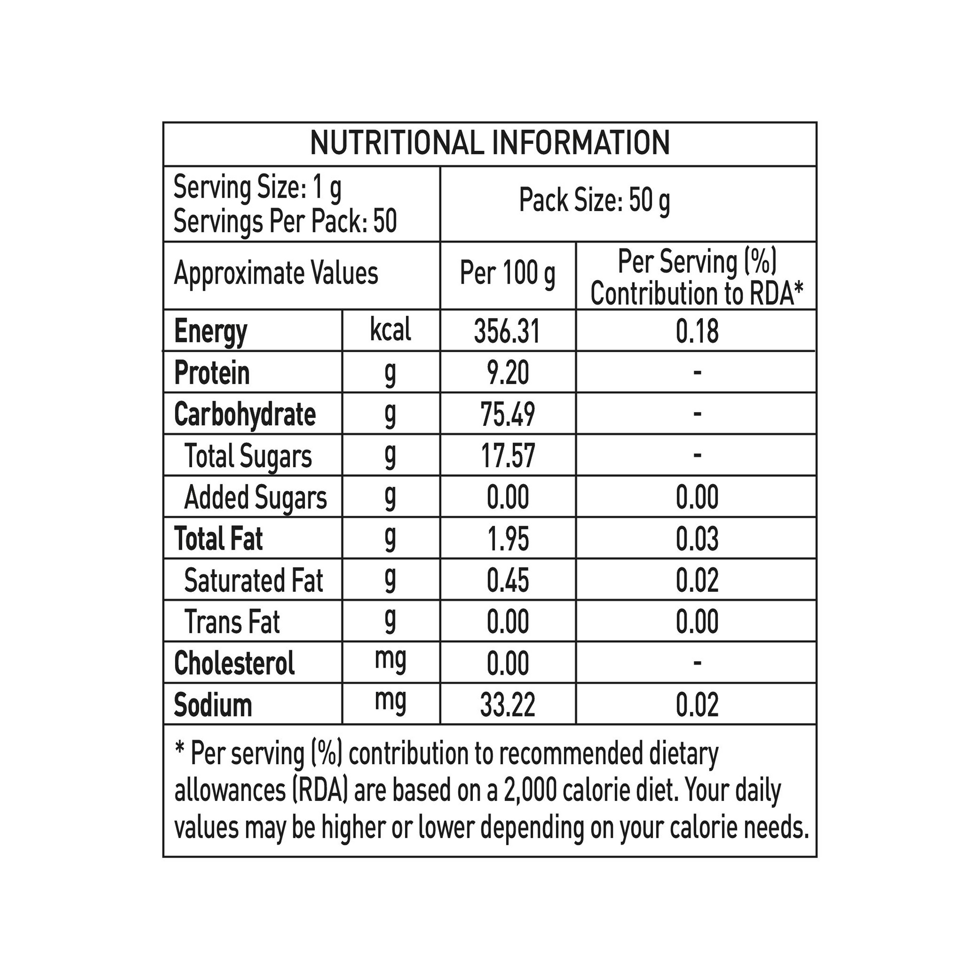 | SERVE SIZE : 1 g | SERVINGS PER PACK :25 | |