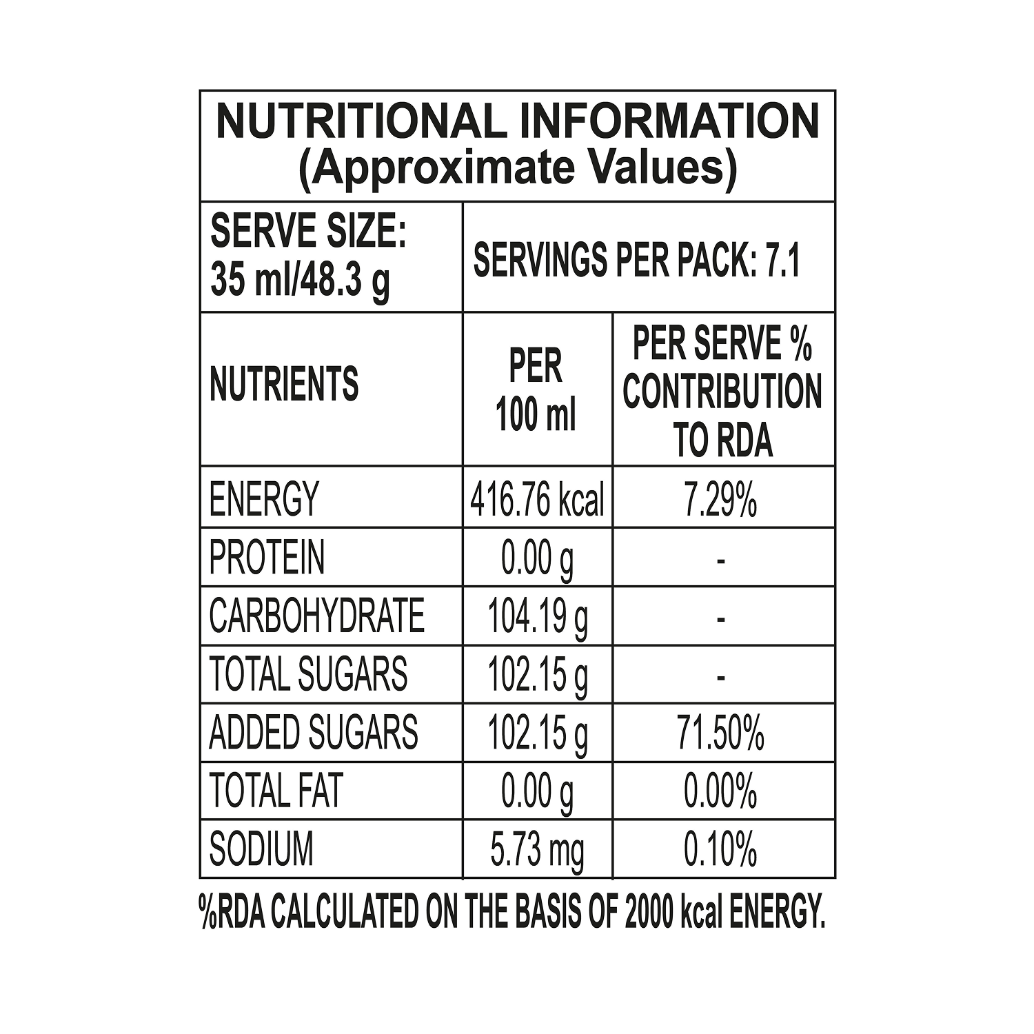 | SERVE SIZE : 35 ml | SERVINGS PER PACK : 7.1 | |