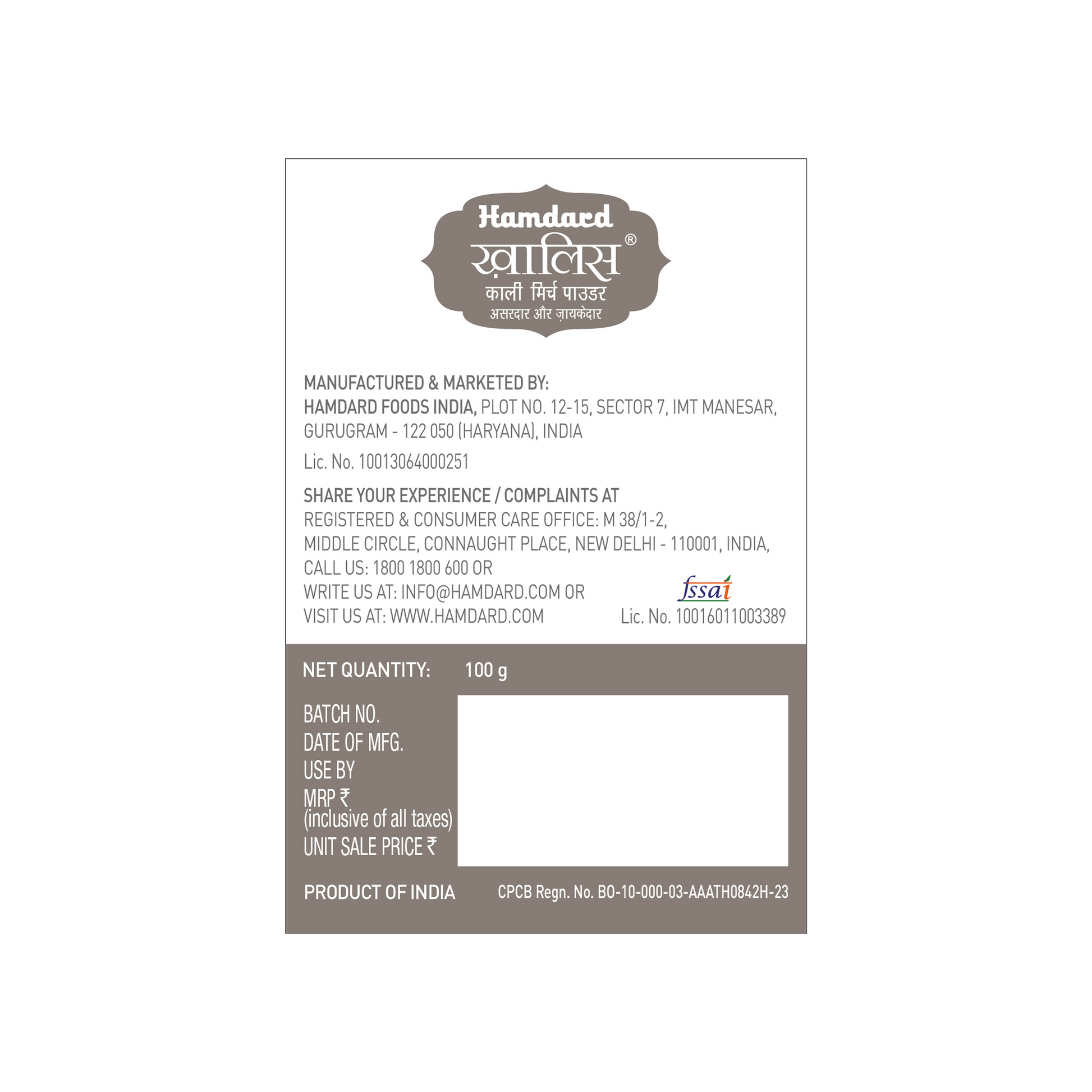Hamdard Khaalis Black Pepper (Kaali Mirch) Powder