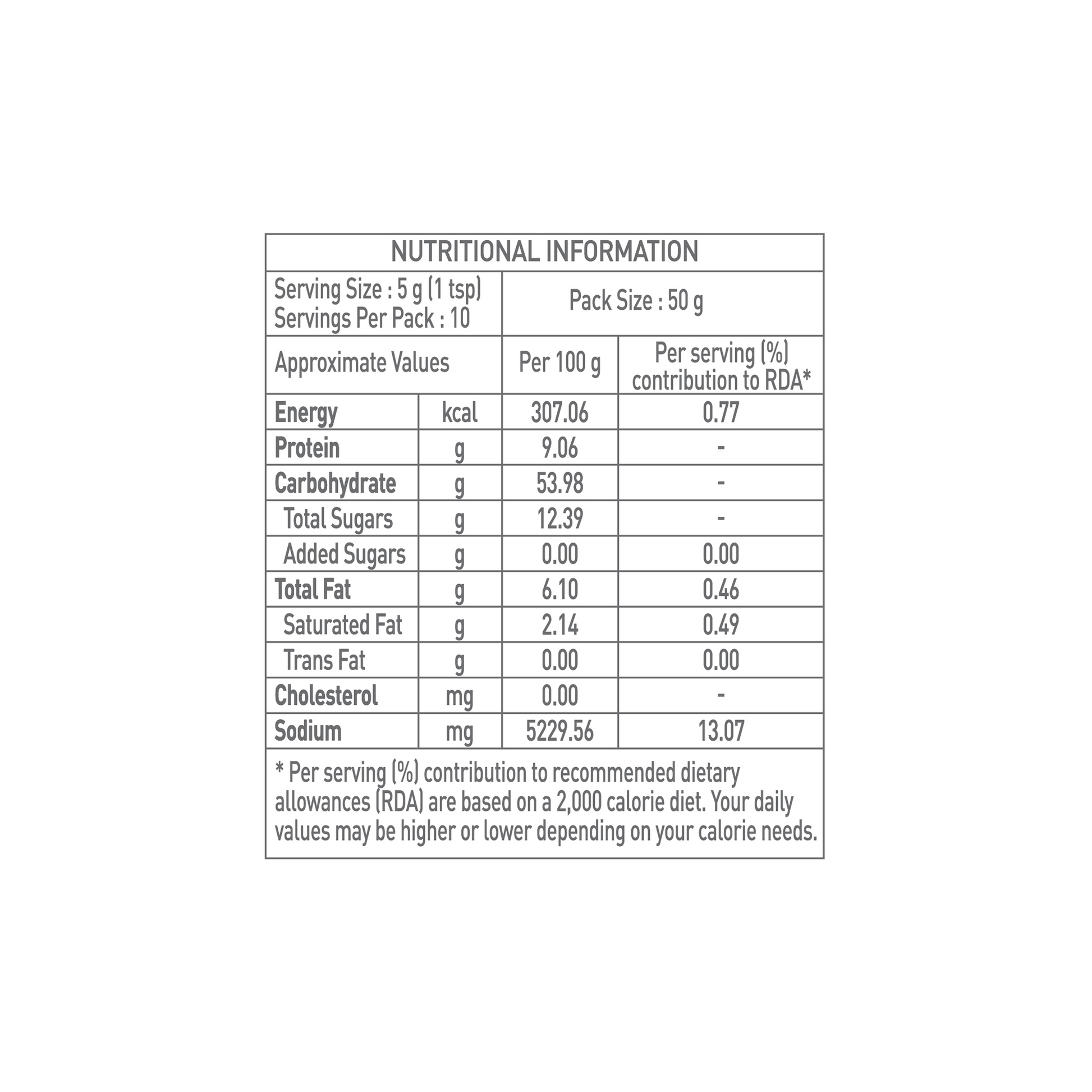 | SERVING SIZE : 5 g (1 tsp) SERVINGS PER PACK : 10 |