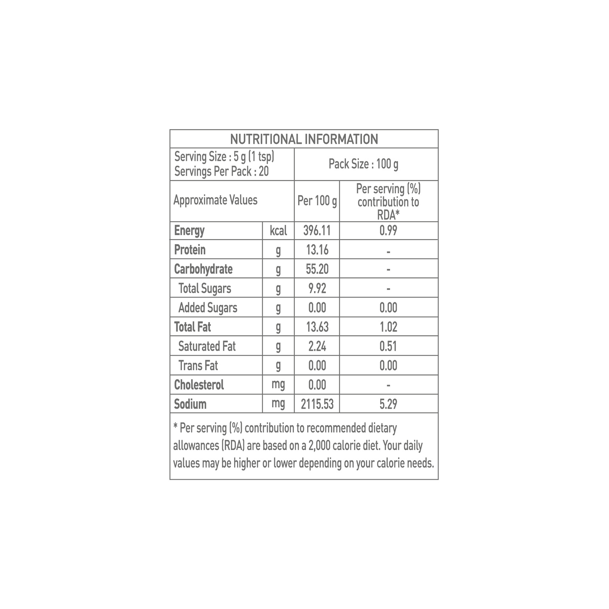 | SERVING SIZE : 5 g (1 tsp) SERVINGS PER PACK : 20 |
