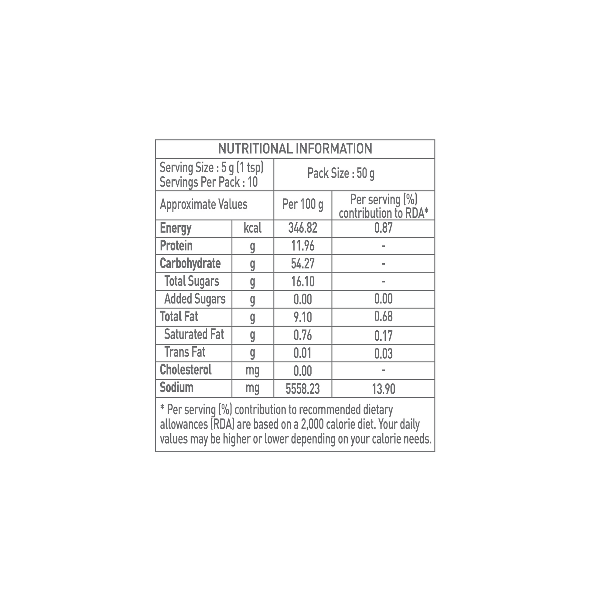 | SERVING SIZE : 5 g (1 tsp) SERVINGS PER PACK : 10 |