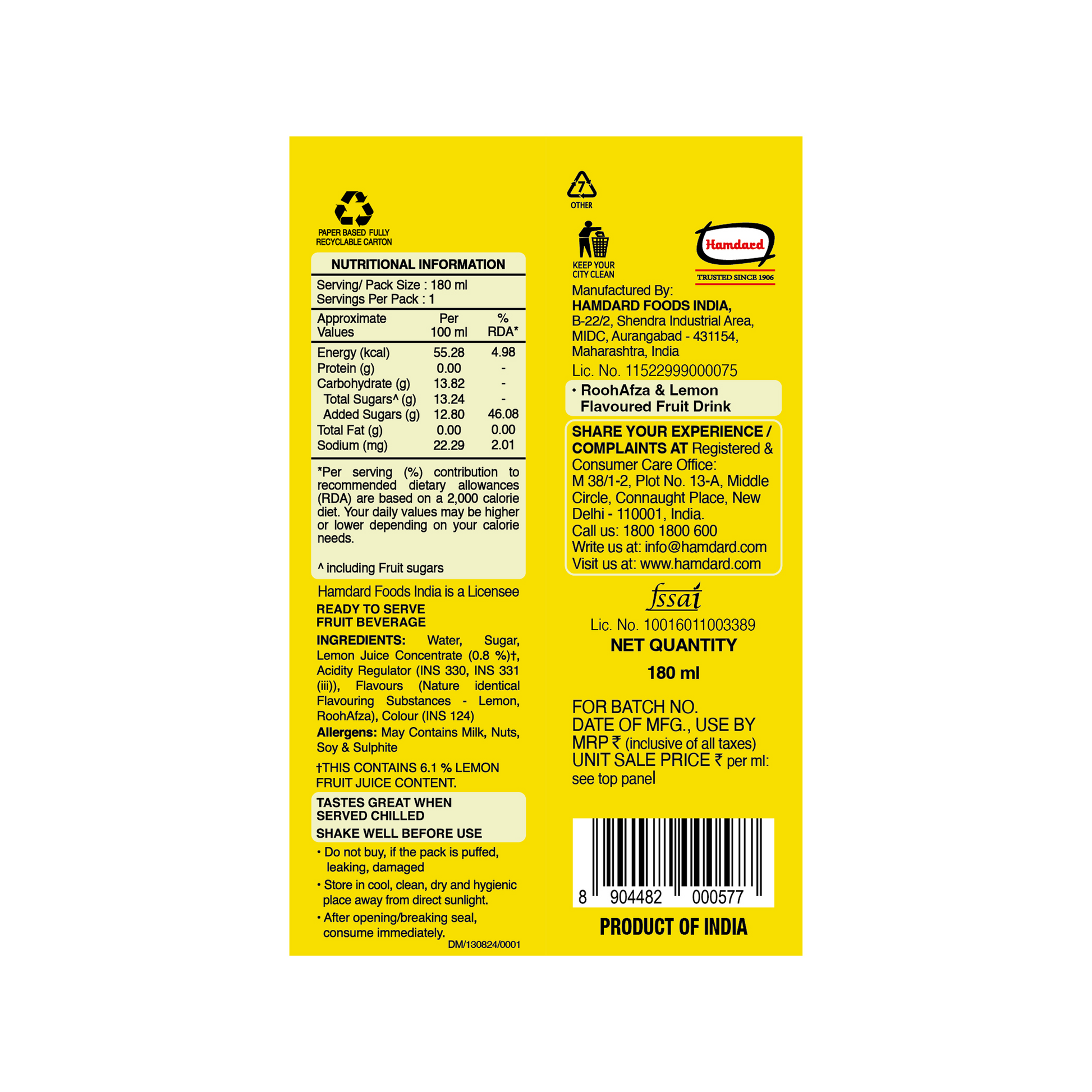 Hamdard Rooh Afza Fusion Lemon | 180ml
