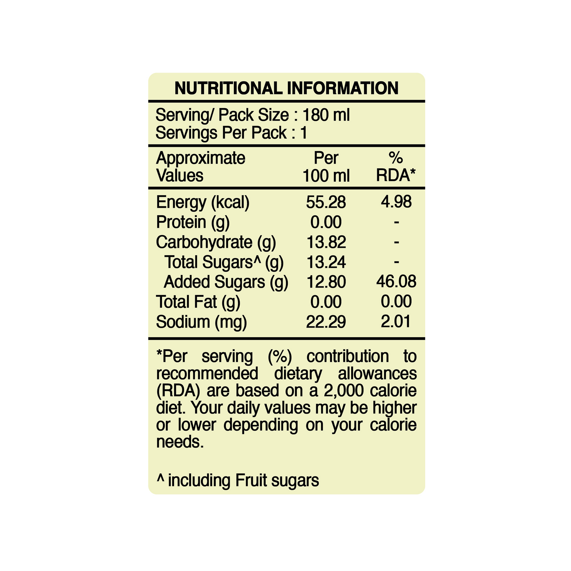| SERVE SIZE : 180 ml | SERVINGS PER PACK : 1 | |
