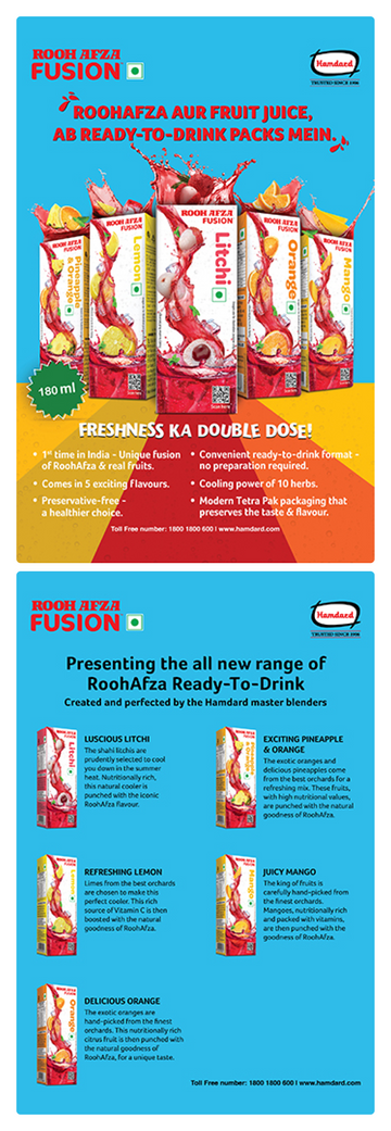 Hamdard Rooh Afza Fusion Orange | 180ml
