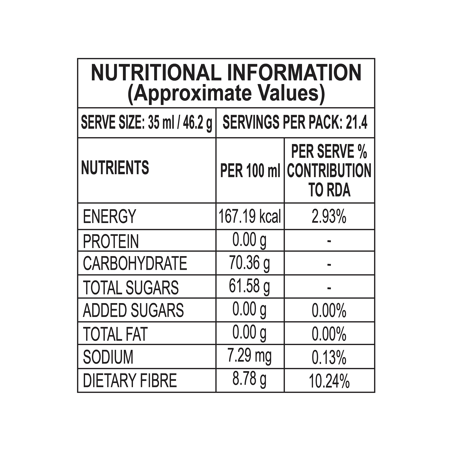 | SERVE SIZE : 35 ml | SERVINGS PER PACK : 21.4 | |
