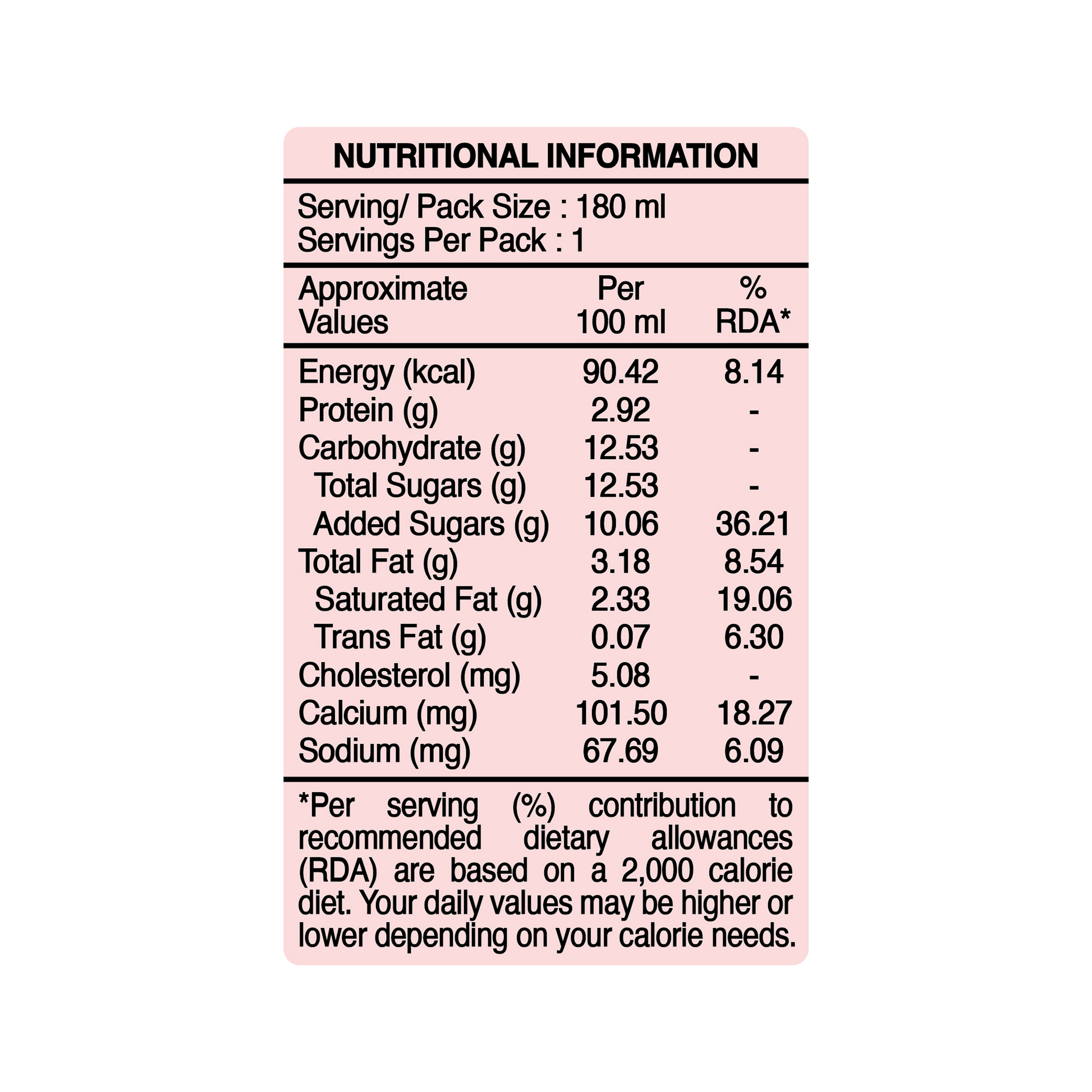 *Per serving (%) contribution to recommended dietary allowances (RDA) are based on a 2,000 calorie diet. Your dairy values may be higher or lower depending on your calorie needs. - RDA Not Established |