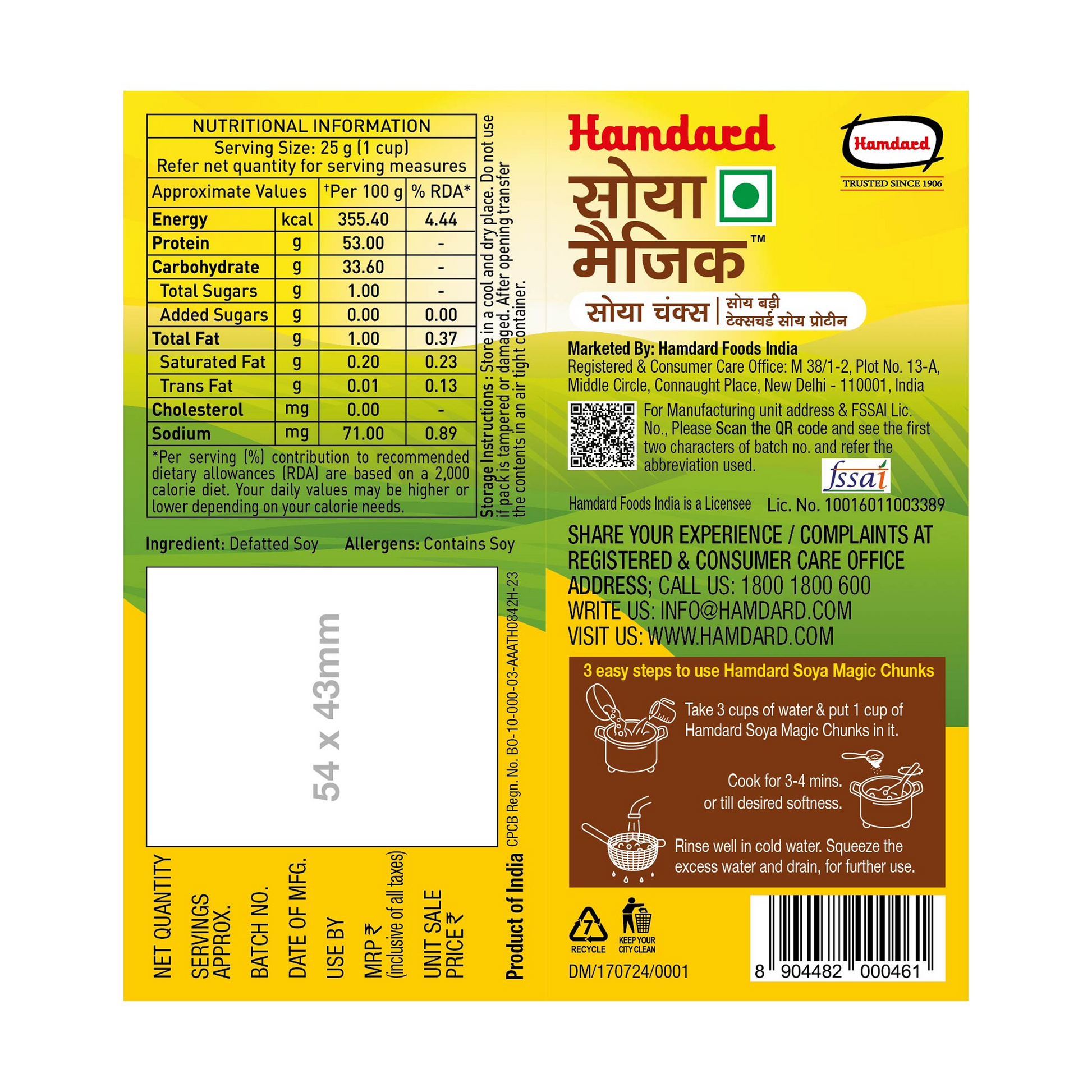 Hamdard Soya Magic Chunks are a nutritious option crafted from defatted soy flour, providing a high protein content. Suitable for vegetarians and vegans, these chunks offer versatility in cooking methods such as stir-frying, stewing, or grilling. They absorb flavors well and provide a satisfying texture in every bite. Ideal for protein-packed meals, they promise both taste and health benefits.